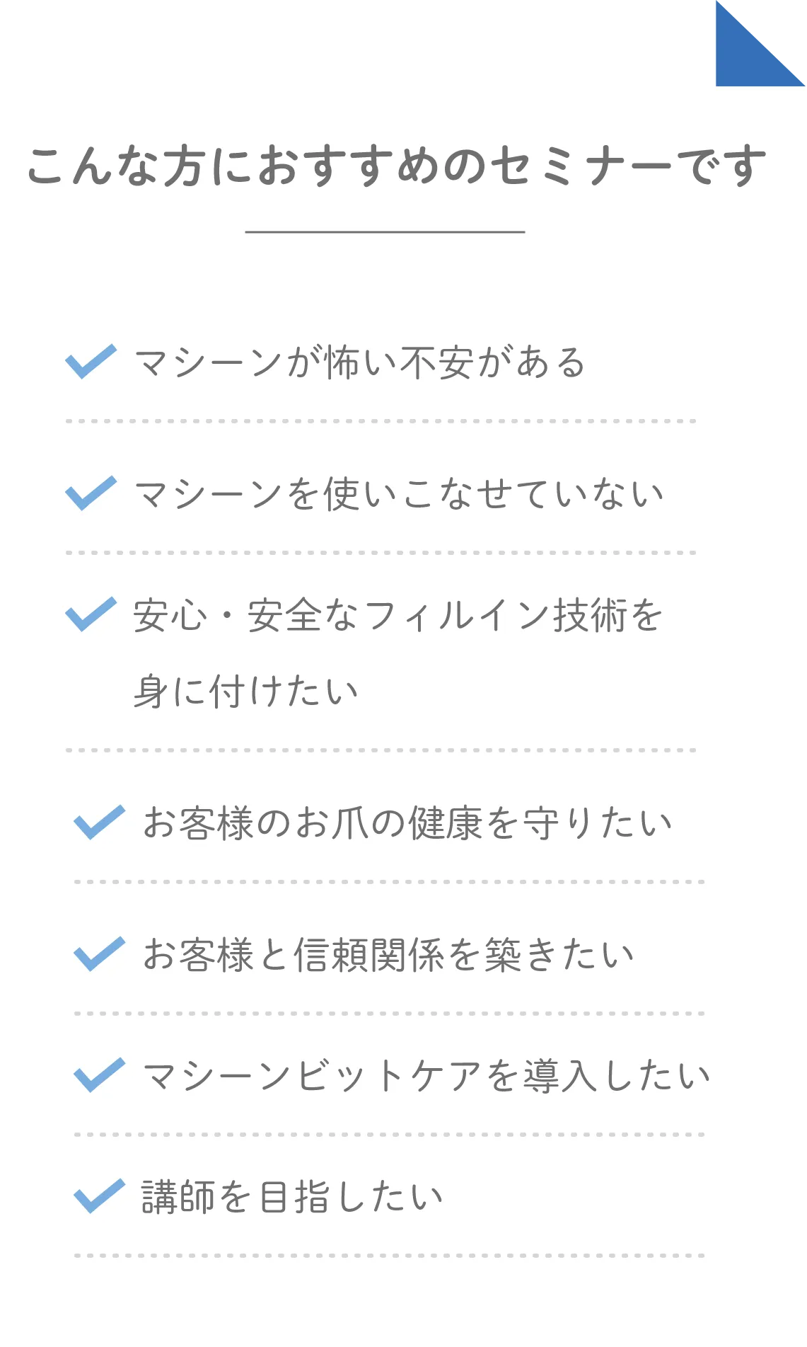 マシンを触った事がない初心者、セルフネイリスト対象のマシン入門コース